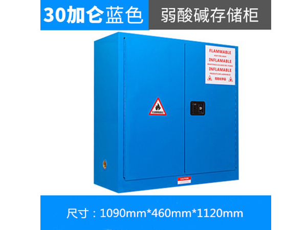 安全柜系列产品有黄(黄色指示易燃物品)、红(红色指示可燃物品)、蓝(蓝色指示弱腐蚀性物品)三种颜色,三种颜色的尺寸相同,储放危险品类型不同。