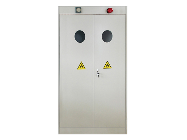 特征:配置气体自动检测报警装置.当被检测气体发生泄露,浓度达到预设定值时,装置自动报警.可选配联动通风系统将柜内气体排出户外.