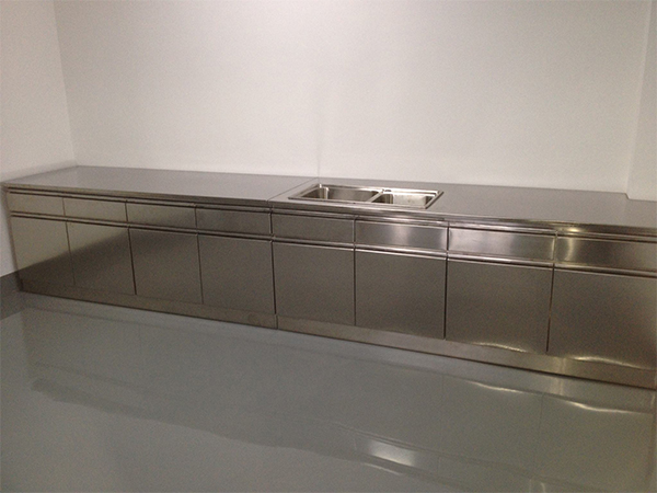 1.材料:台面采用1.0mm厚316/304不锈钢板(可选),经冲压、折弯制作而成,加基材厚度达到20mm,具有防水、耐高温耐磨、耐抗击、不变形、无毒、易清洁、并具有良好的承重性能。